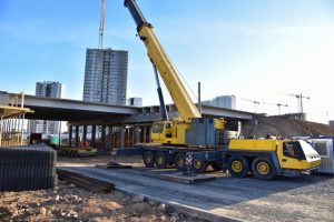 Highway Construction Crane Falls Onto Vehicle, Injuring 3